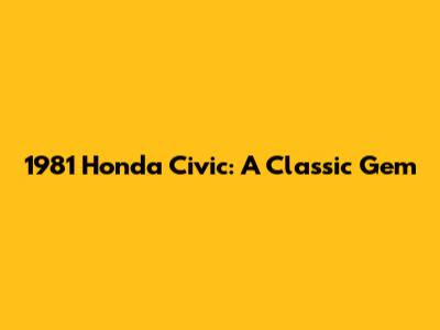 1981 Honda Civic: A Classic Gem