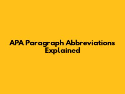 APA Paragraph Abbreviations Explained