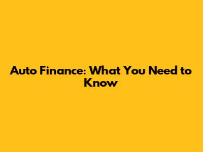 Auto Finance: What You Need To Know