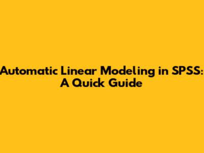 Automatic Linear Modeling SPSS: A Quick Guide