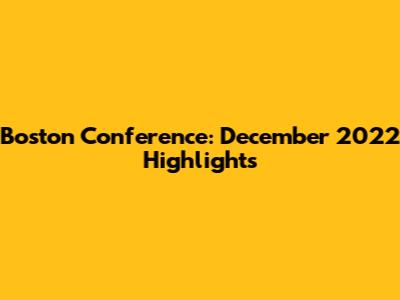 Boston Conference: December 2022 Highlights