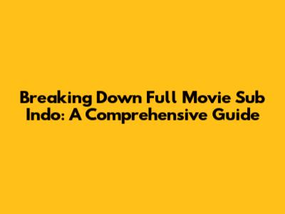 Breaking Down Full Movie Sub Indo: A Comprehensive Guide
