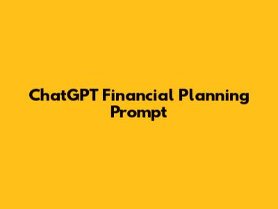 ChatGPT Financial Planning: Prompts For Success