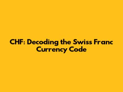 CHF: Decoding The Swiss Franc Currency Code