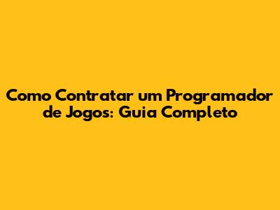 Como Contratar Um Programador De Jogos: Guia Completo
