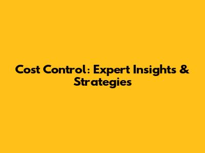 Cost Control: Expert Insights & Strategies