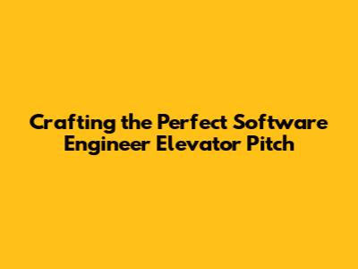 Crafting The Perfect Software Engineer Elevator Pitch