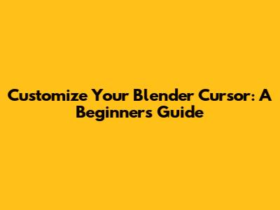 Customize Your Blender Cursor: A Beginner's Guide
