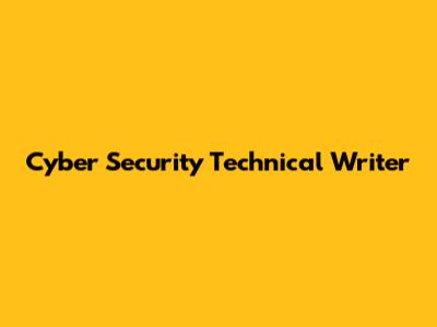 What is a Cyber Security Technical Writer?