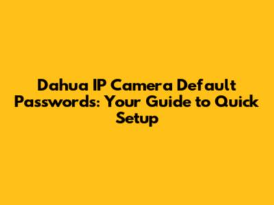 Dahua IP Camera Default Passwords: Your Guide To Quick Setup