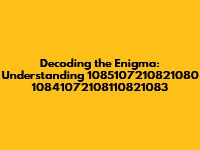 While the true meaning of "1085107210821080 10841072108110821083" remains a mystery, the process of decoding it is an adventure in itself. It challenges our minds, sparks our curiosity, and reminds us of the hidden patterns that exist all around us. Whether we ultimately crack the code or not, the journey is a valuable learning experience. So, keep exploring, keep questioning, and never stop seeking the hidden meanings in the world around you. Who knows what other secrets are waiting to be uncovered?
