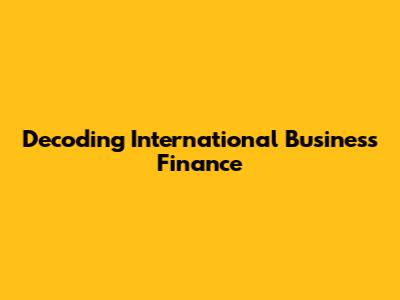 Decoding International Business Finance