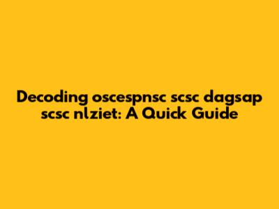 Decoding Oscespnsc Scsc Dagsap Scsc Nlziet: A Quick Guide