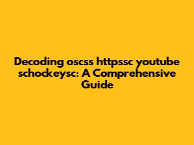 Decoding Oscss Httpssc Youtube Schockeysc: A Comprehensive Guide