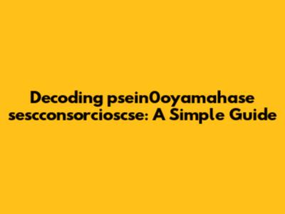 Decoding Psein0oyamahase Sescconsorcioscse: A Simple Guide