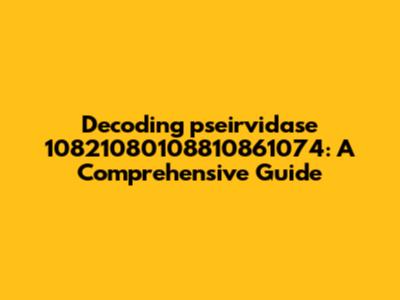 At first glance, pseirvidase 10821080108810861074 looks like a jumble of letters and numbers. To make sense of it, we need to deconstruct it into smaller, more manageable parts. The initial segment, "pseirvidase," appears to be a word or a potential identifier. The subsequent string of numbers, "10821080108810861074," could represent a numerical code, a timestamp, or some other form of data encoding.