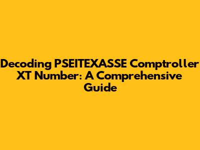 Decoding PSEITEXASSE Comptroller XT Number: A Comprehensive Guide