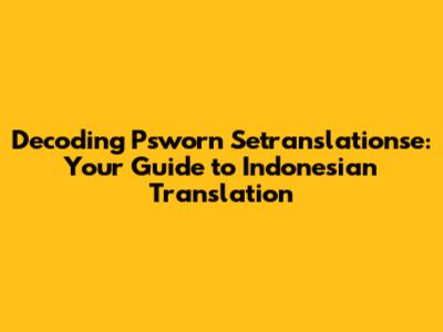 Decoding Psworn Setranslationse: Your Guide To Indonesian Translation