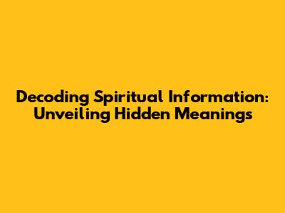 Decoding Spiritual Information: Unveiling Hidden Meanings