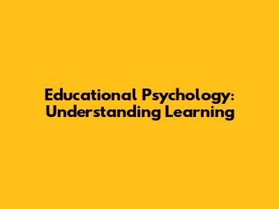 Educational Psychology: Understanding Learning