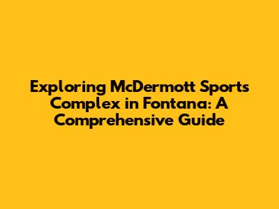 Exploring McDermott Sports Complex In Fontana: A Comprehensive Guide