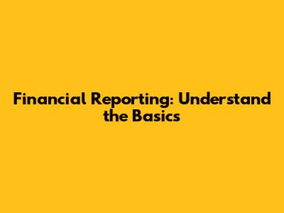 Financial Reporting: Understand The Basics