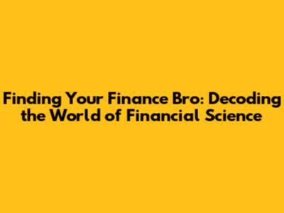 Finding Your Finance Bro: Decoding The World Of Financial Science