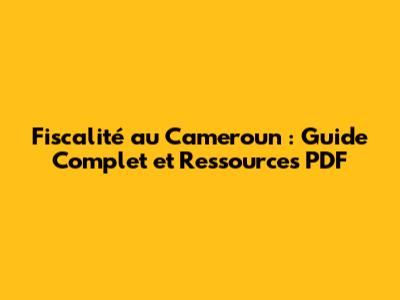 Fiscalité Au Cameroun : Guide Complet Et Ressources PDF