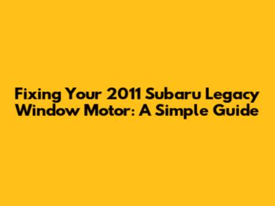 Fixing Your 2011 Subaru Legacy Window Motor: A Simple Guide