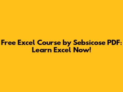 Free Excel Course By Sebsicose PDF: Learn Excel Now!