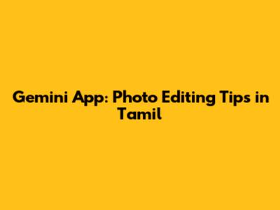 Gemini App: Photo Editing Tips In Tamil