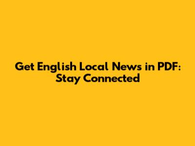 Get English Local News In PDF: Stay Connected