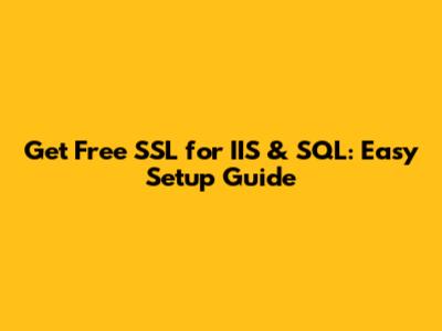 Get Free SSL For IIS & SQL: Easy Setup Guide