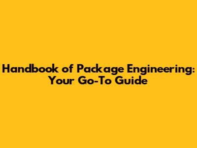 Handbook Of Package Engineering: Your Go-To Guide