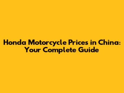 Honda Motorcycle Prices In China: Your Complete Guide