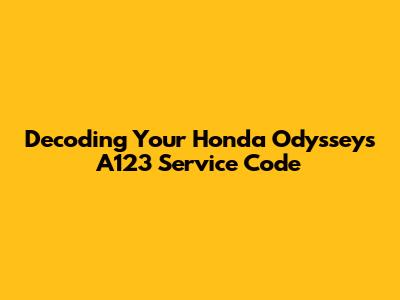 Hey guys! Ever looked at your Honda Odyssey's maintenance minder and seen that A123 code pop up, feeling a bit confused about what it actually means? You're definitely not alone! This little code is your car's way of telling you it's time for some TLC, but it can seem like a secret language at first. Don't sweat it, though, because today we're going to break down exactly what the A123 service code signifies for your trusty Honda Odyssey. Think of it as your car's personal health report, and understanding it is key to keeping your minivan running like a dream for years to come. We'll dive deep into what each part of the code means, what services are typically involved, and why paying attention to these codes can save you a ton of headaches and money down the road. So, buckle up, and let's get your Odyssey back on track!