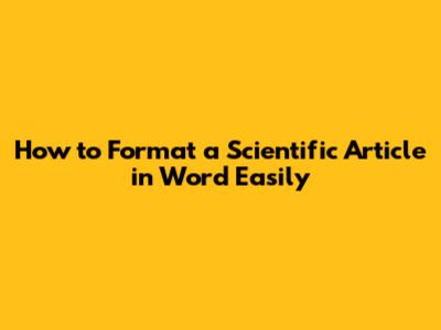 How To Format A Scientific Article In Word Easily