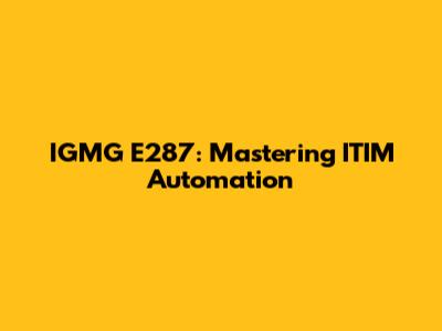 IGMG E287: Mastering ITIM Automation