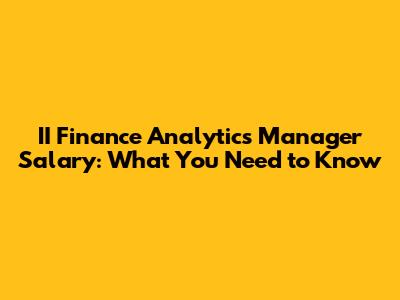 II Finance Analytics Manager Salary: What You Need To Know