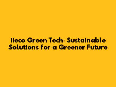 Iieco Green Tech: Sustainable Solutions For A Greener Future