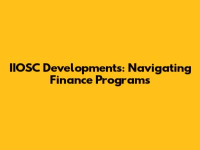 IIOSC Developments: Navigating Finance Programs