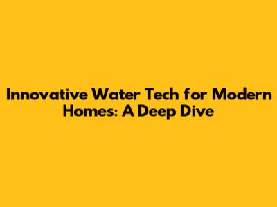Innovative Water Tech For Modern Homes: A Deep Dive