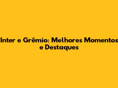 Inter E Grêmio: Melhores Momentos E Destaques