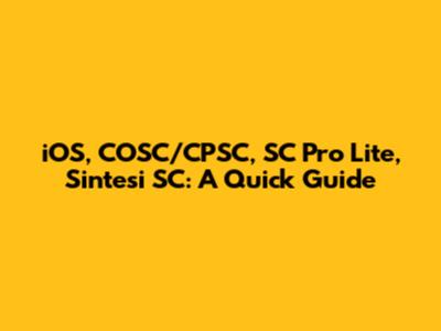 IOS, COSC/CPSC, SC Pro Lite, Sintesi SC: A Quick Guide