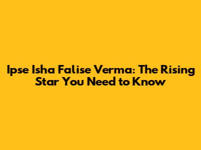 Ipse Isha Falise Verma: The Rising Star You Need To Know