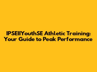 IPSEIIYouthSE Athletic Training: Your Guide To Peak Performance