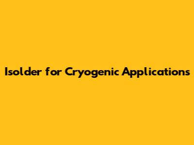 Isolder For Cryogenics: A Comprehensive Guide