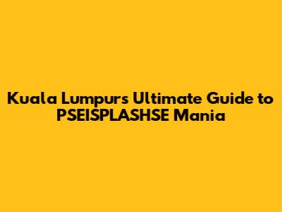 Kuala Lumpur's Ultimate Guide To PSEISPLASHSE Mania