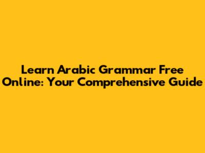 Learn Arabic Grammar Free Online: Your Comprehensive Guide