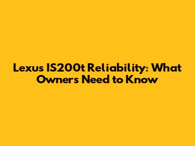 Lexus IS200t Reliability: What Owners Need To Know